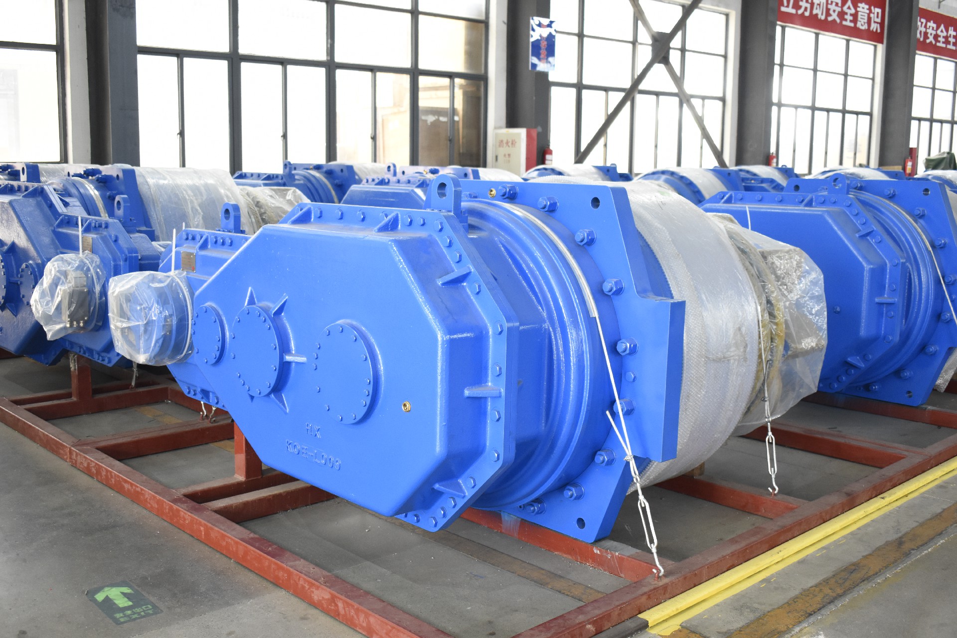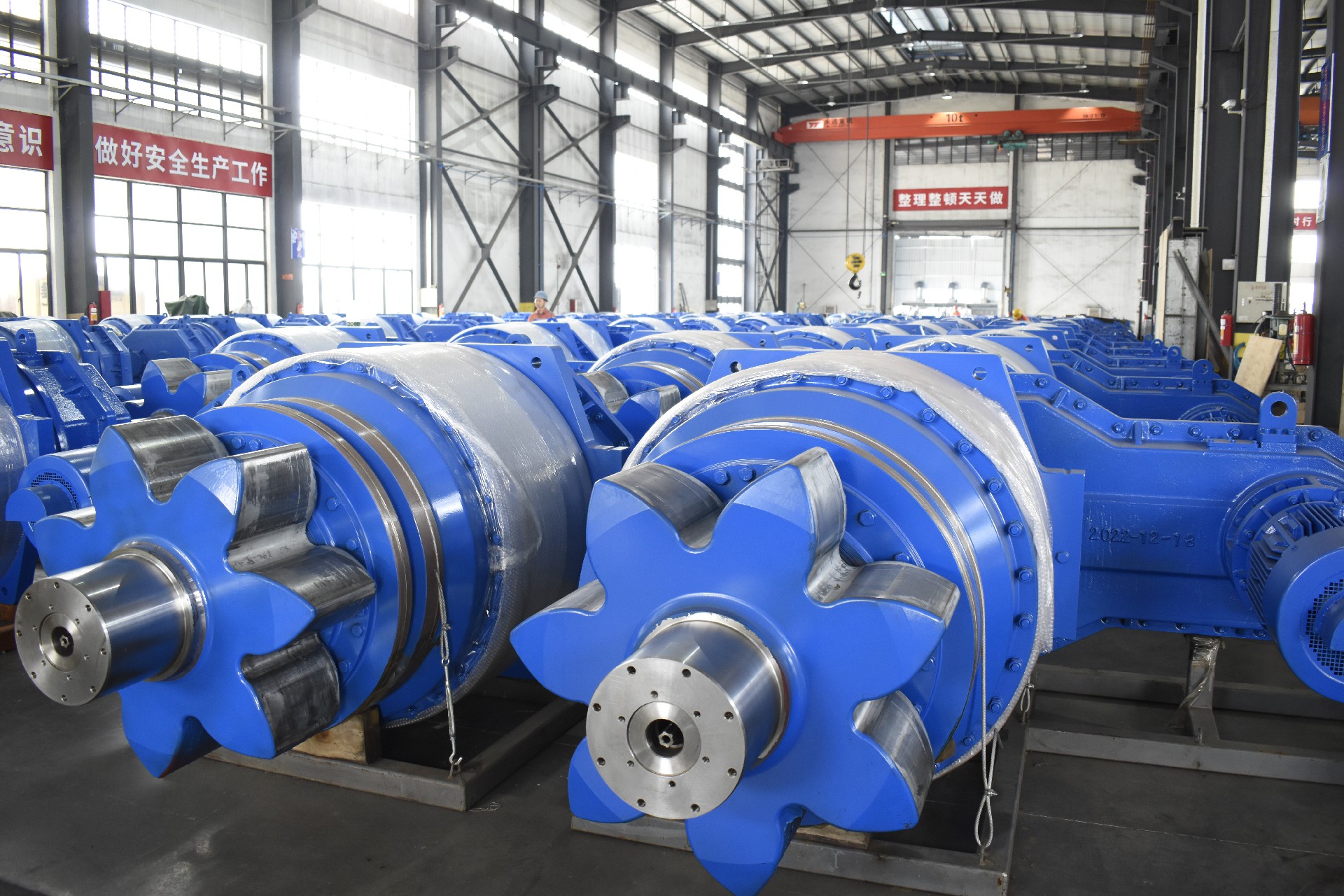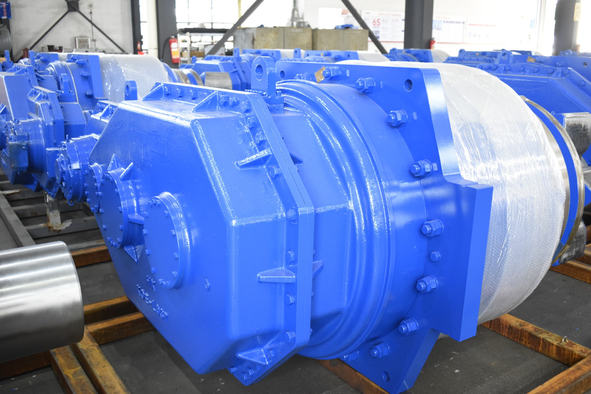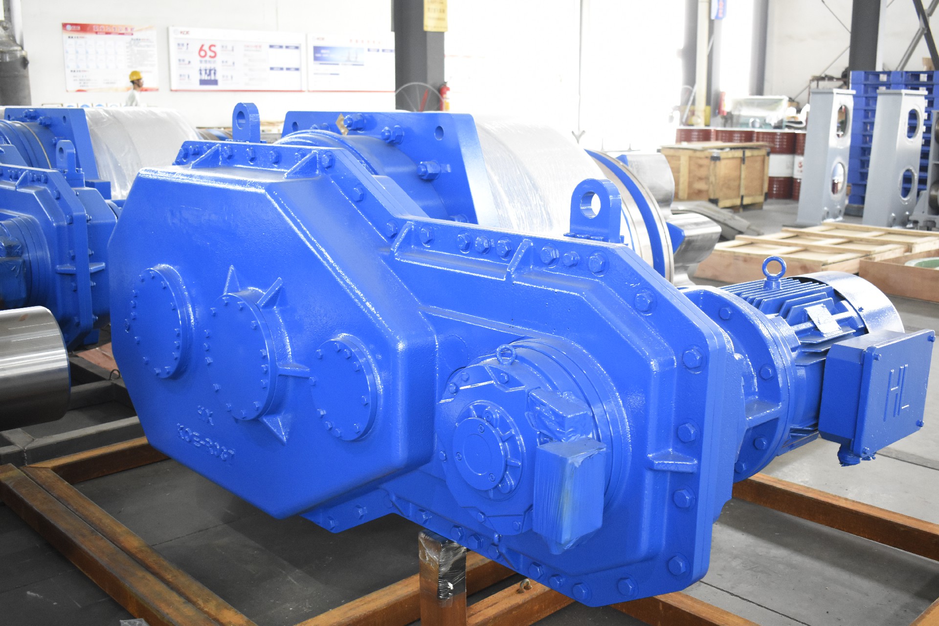 一套齿轮齿条升降系统一般由多个升降单元及电气控制系统构成,升降单元数量根据平台所要求的举升能力和平台总体要求加以确定。升降单元由行星减速箱、平行减速箱、爬升齿轮、电机、制动器等部件组成。动力通过马达驱动齿轮减速箱,传递给与桩腿齿条啮合的爬升齿轮带动平台完成升降。按照驱动方式,齿轮升降系统分为电机驱动齿轮齿条式和液压驱动齿轮齿条式。